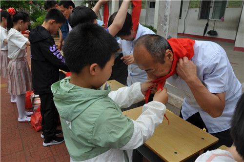 活動開始時,學校少先隊員們?yōu)橹飨_上的師長佩戴了紅領(lǐng)巾表達少先隊員傳承革命精神的決心。緊接著,在雄壯的國歌聲中,一面鮮艷的五星紅旗在校園主席臺前徐徐升起,在場的全體黨員及學生們對著行注目禮,并大聲唱起國歌。而后,由公司黨總支副書記周紅代表全體黨員對同學們致以節(jié)日的祝賀,祝同學們節(jié)日愉快,身體健康,并殷切希望全體少年兒童努力學習,將來為建設(shè)祖國貢獻力量!