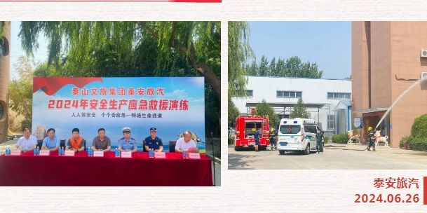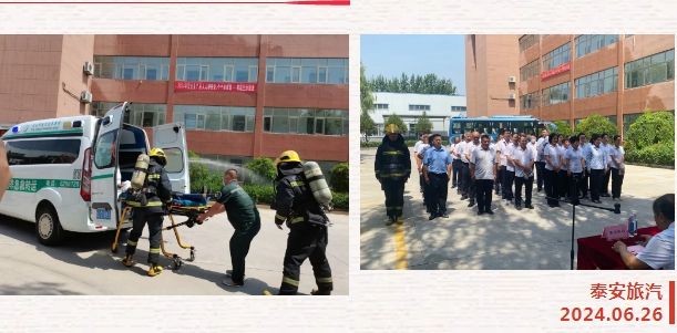 為全面強化公司安全管理,切實提高全體職工的安全意識和安全素養(yǎng),貫徹落實行業(yè)主管部門關于安全生產(chǎn)工作重要指示精神和安全生產(chǎn)月活動統(tǒng)一部署,6月26日上午,泰山文旅集團泰安旅汽結合實際,緊緊圍繞2024年第23個安全月“人人講安全 個個會應急——暢通生命通道”的活動主題,組織進行了辦公樓火災逃生綜合應急預案演練和車輛起火現(xiàn)場處置預案演練。本次活動邀請到市交通運輸局、交警支隊、消防大隊、中心血站、文旅產(chǎn)投集團相關單位領導蒞臨現(xiàn)場觀摩指導。